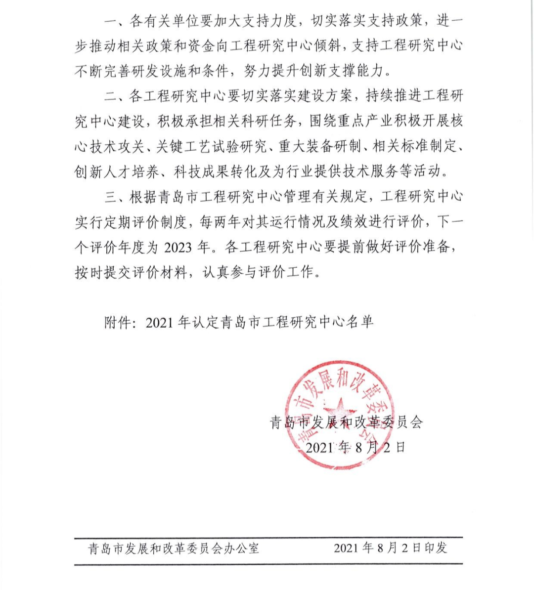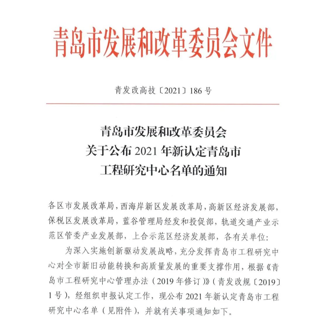 2021年认定青岛市工程研究中心名单(部分)